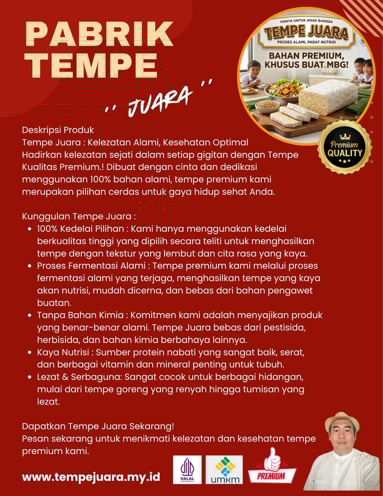 Tempe Juara, pilihan tepat untuk Program Makan Bergizi Gratis di SPPG Anda.